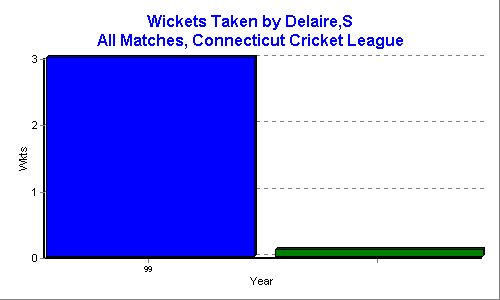 Wickets 3 5W/I: 0 10W/M: 0 Runs 61 Overs 16 Average 20.33 Best Bowling 3-27 Vs NEW HAVEN CRICKET CLUB 1999 Economy Rate 3.81